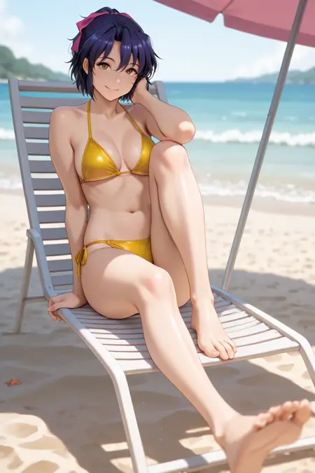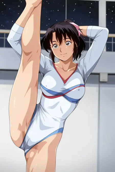 描绘《Ganbarist! Shun》动画中的折笠麗子(Reiko Orikasa),这位超柔韧的女孩