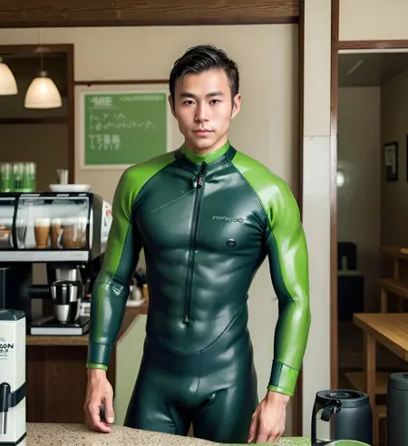 초록과 주황 스쿠버 스우트를 입은 한국인 남자, 도서관