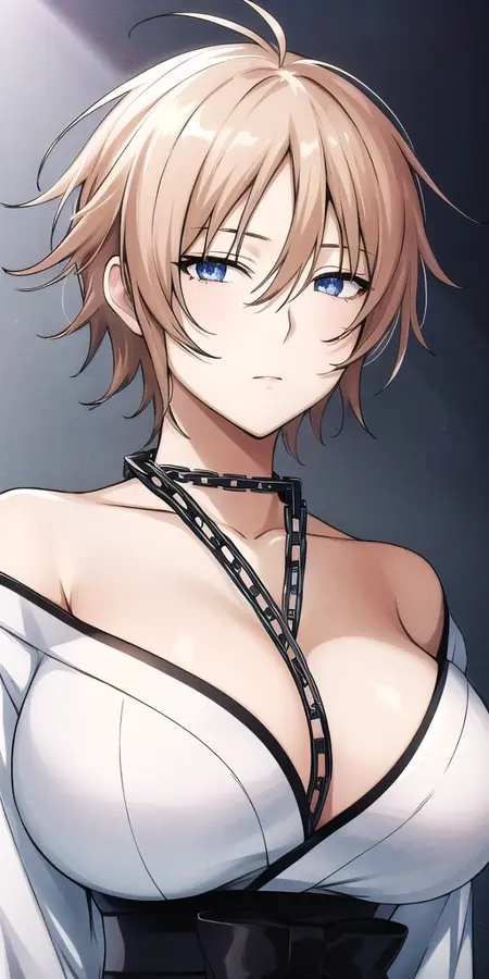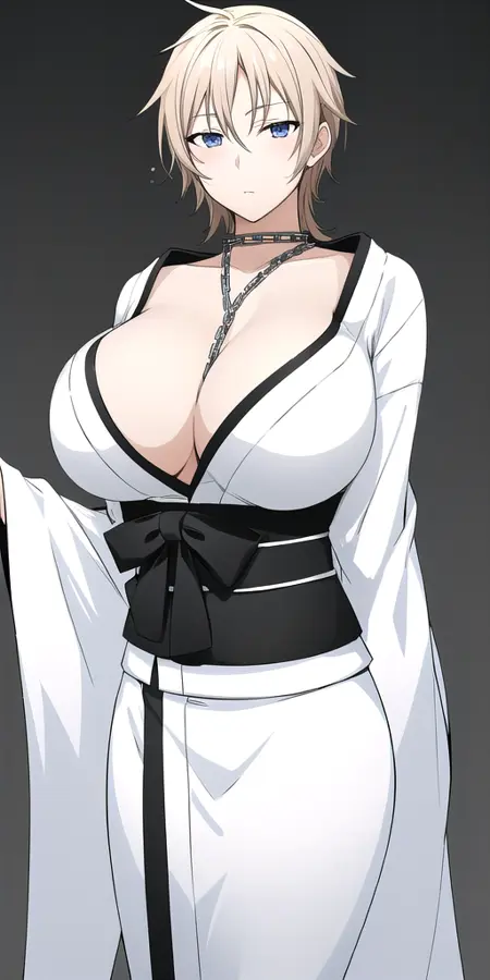 White_kimono_Open_clothes_Black_sash_Wide_sleeves_Chain_necklace