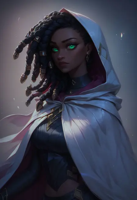 Basic prompts : Senna, 1girl, dark skin, green eyes, black dreadlock