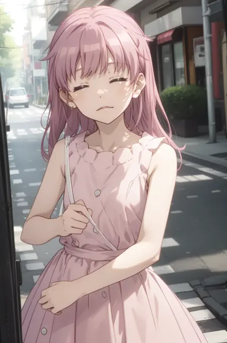 ロングヘア、ドレス、ノースリーブ、ノースリーブドレス、ピンクのドレス