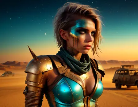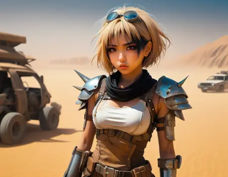 이 LoRA는 포스트-apocalyptic 사막 장면을 위한 지원을 위해 설계되었다. 초기 조사를 할 때, 내가 테스트한 대부분의 기본 모델들은 사람, 갑옷, 고온, 또는 흙 중 하나 또는 둘은 잘 처리했지만, 이 모든 요소를 함께 처리하지는 못했다. 이 LoRA는 스타일리시한 상황이든 사진처럼 사실적인 상황이든, 이러한 공백을 메우는 데 도움을 주기 위해 만들어졌다.