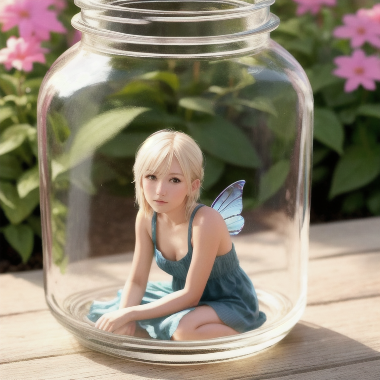 人物を瓶に入れると、顔がぼやけたり歪みが生じます。瓶が多かったり、人物が多いほど、その傾向が強まります。プロンプトや顔の復元機能を使うことで多少助けになります。