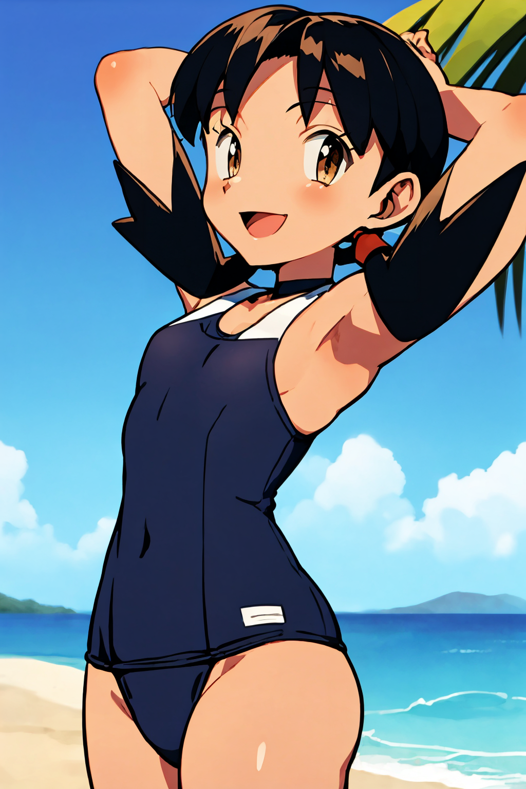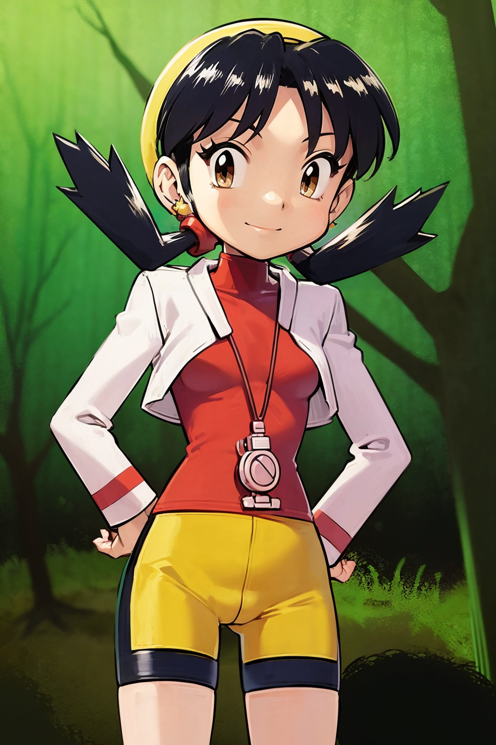 基本プロンプト:1girl, kris \(pokemon\), black hair, twintails, bangs, brown eyes