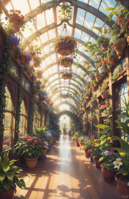 Prompt 2: A digital painting of a garden full of blooming flowers in the early morning light, with dewdrops glistening in the sunlight. (Pastel colors:1.5), (Soft light:1.2), (Detailed:1.3), (Macro:1.2), inspired by Monet's water lilies, Van Gogh's Sunflowers, and Hokusai's cherry blossoms.
