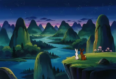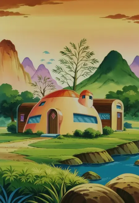The planet can or cannot have the yellow cloud and there's some training for the house, it works especially from afar, I'll have to revisit this version in the future because the tags being actual words, tend to do undesired things. Some models struggle with the fact of having clouds as ground basically so use negatives accordingly, same for snake girls.