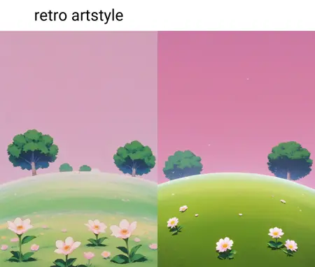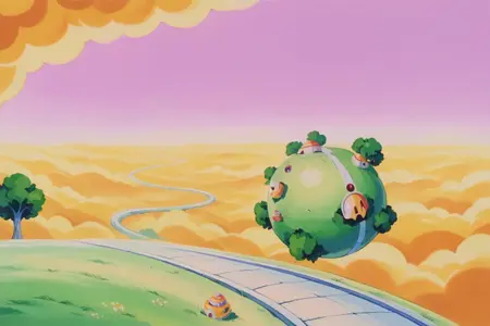 tree- 生成典型的气球状树木。hill- 尝试生成小坡地。plateau- 我不确定它是否有效,但我的本意是生成《龙珠》中常见的那种地面柱状结构(它既不是山丘也不是山峰,观看 DBZA 你就知道区别了)。但因为它不是 booru 标签,我怀疑其效果可能是安慰剂效应。mountain- 生成比 hill 更大的坡地或背景中的山脉。ocean, river, island- 无需解释。building- 生成那美克星风格的建筑。village- 尝试生成聚落,但也不是好的 booru 标签,建议使用权重控制。