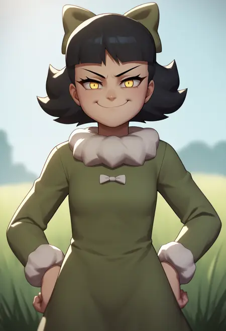基本プロンプト: 1girl, oliviamann, black hair, bangs, short hair, yellow eyes, hair bow