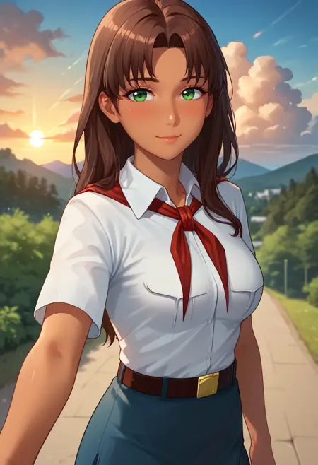 トリガーワード:olga, green eyes, brown hair, long hair, 1girl, solo,