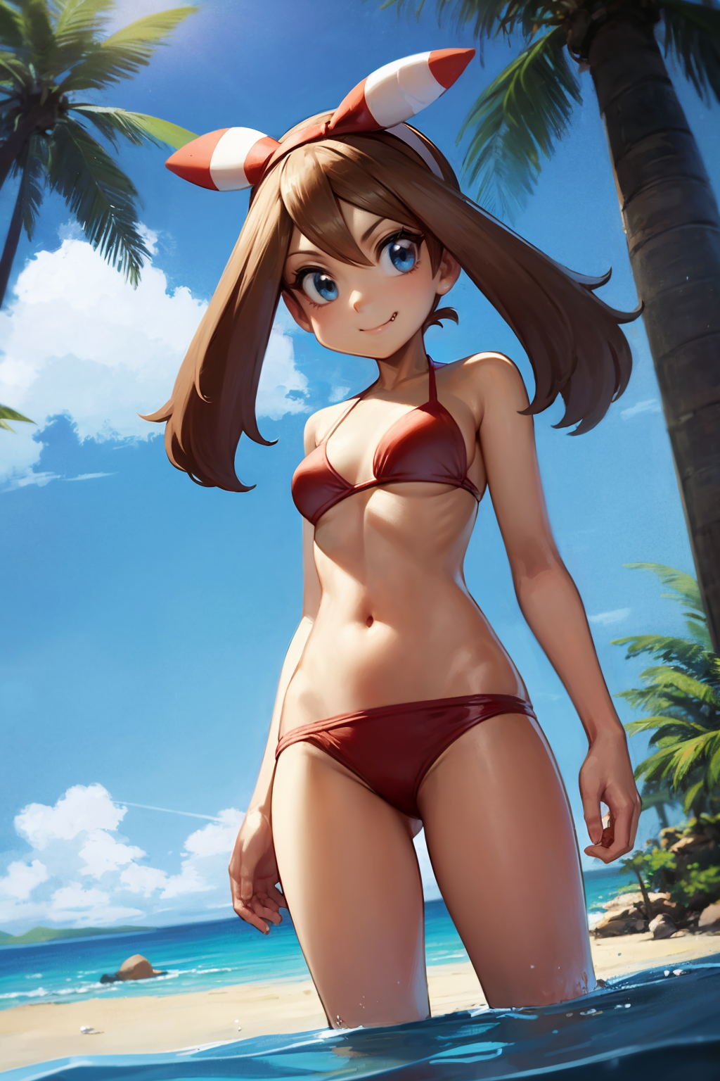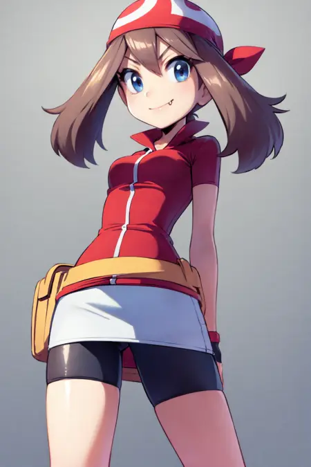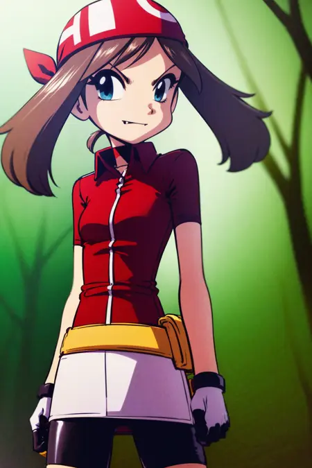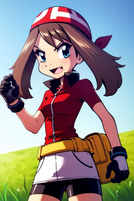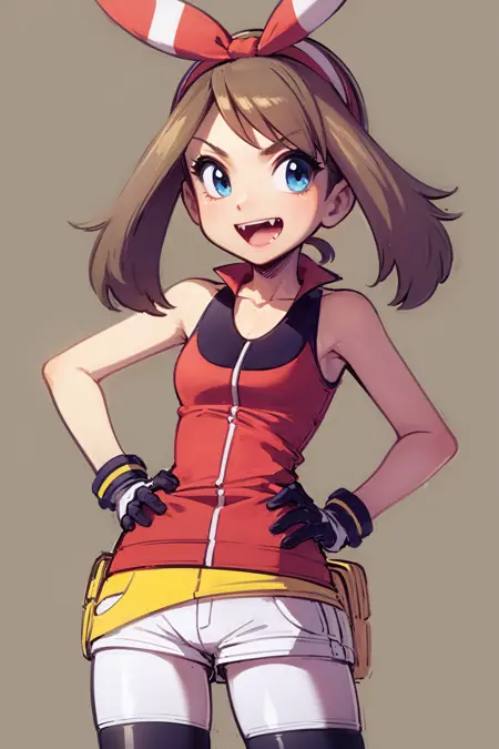 基础提示词:1girl, may \(pokemon\), 棕色头发, 蓝眼睛, 尖牙