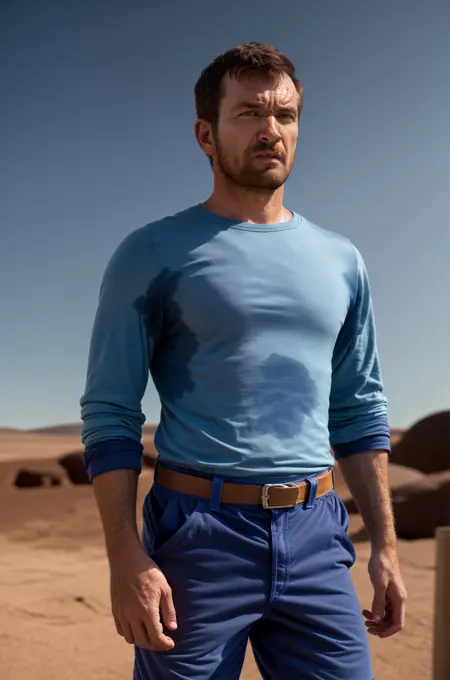 {side view|front} view of {Harrison Ford|Leonardo DiCaprio|Brad Pitt|Chris Hemsworth|Hugh Jackman} on his {shorts|suit pants|jeans:1)} wearing a {long sleeves|tank top|button|vneck|high crewneck} {light|dark}-__YetAnotherWildcardCollection-main/Colors/Basic__ (shirt with sweat:1.3) {sitting on the floor|running|lying resting on the ground} in a {forest|road|street|distant planet moon surface|marathon} alone, dynamic pose, {his arms are fully extended and he is posing for the camera|his arms are on his hips|his arms are pointing to {his armpits|the camera}|his arms are behind his head}, large (s3t on armpit:1.2), natural lighting, 4k uhd, dslr, high quality, Fujifilm XT3