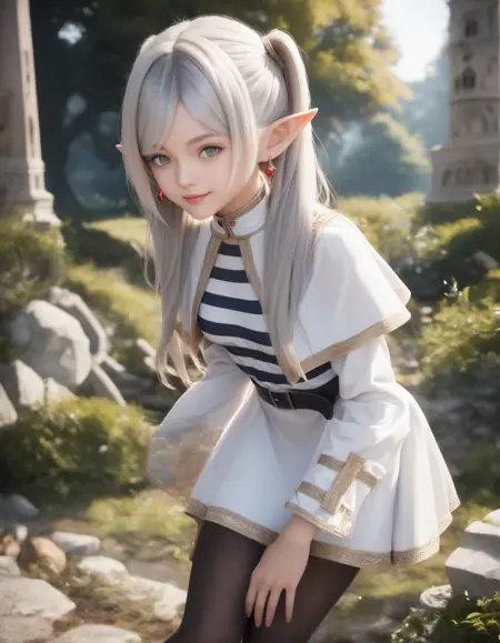 | Trained Words | frieren,green eyes,dangle earrings,drop earrings,elf,grey hair,long hair,parted bangs,pointy ears,twintails,white hair,Copied! black belt,(black pantyhose),white capelet,white dress,jewelry,long sleeves,red gemstone,white skirt,(striped shirt:1.1),Copied! holding staff,mage staffCopied! |
