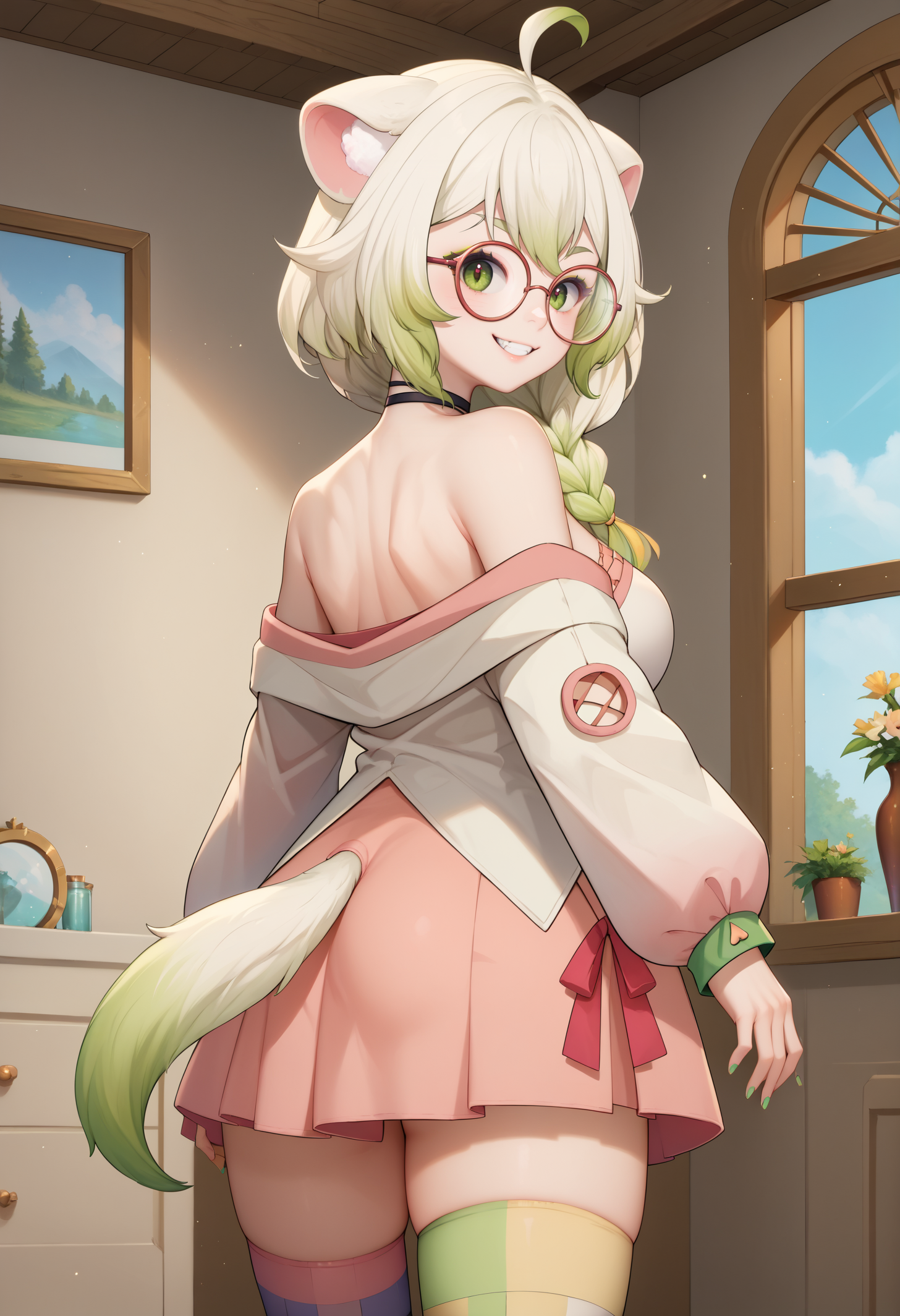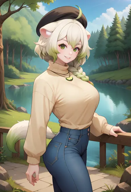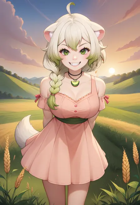 トリガー: "LaimuVT, 緑の目, 動物の耳, 尾, 多色の髪" は常に必要です。かわいいライムネックレスを追加するには "チョーカー、ネックレス" を追加し、以下から髪型を選んでください。