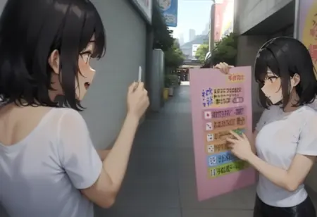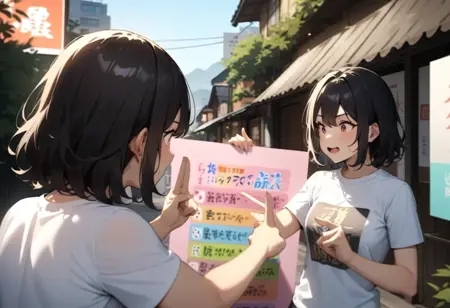 这是一个可能能够描绘两个人拿着一块板子的场景的LoRA。これは二人の人間がボードを持つ光景を描く事が出来るかもしれないLoRAです。