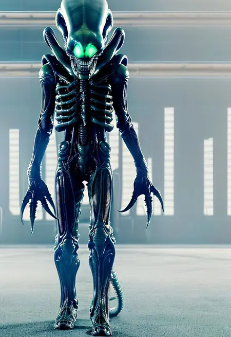 350時間以上の作業を要し、画像の調整・クリーニングに60時間、DreamBoothの訓練を15回実施し、数万枚の画像生成を行いました。その成果として、ギーガーの伝説的なゼノモーフの詳細な類似像を生成できるモデルが完成しました。ほとんどのシードで、やや高いCFG設定でも劣化せずに動作可能。クローズアップポートレートや全身ショットに最適化されており、私が可能な限り一貫性・正確性・忠実度の高いギーガーのゼノモデルとして構築されています。