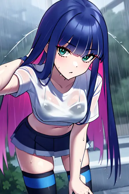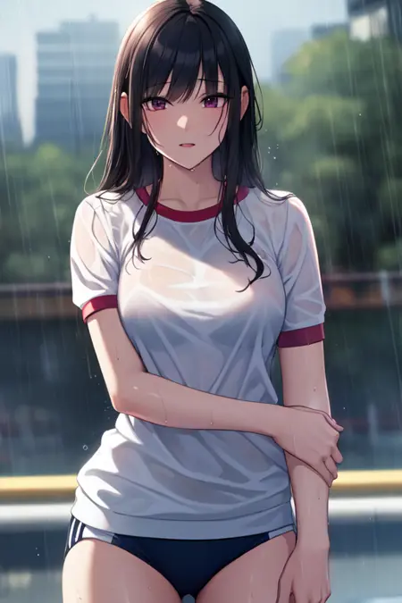 衣装をプロンプトに入れるには、「lora:WetClothesv1:strengthwecl, see-through,」と入力してください。濡れた衣装を示すタグとして、「shirt, tied shirt, crop top, gym uniform, serafuku, school uniform,」が使用できます。この衣装はシャツに限らず、追加のプロンプトにより非訓練済みの衣装にも適用可能です。また、被写体にさらに濡れた印象やよりカスタマイズされた外見を付与するためのサポートタグも学習済みです。これらのタグには「bra visible through clothes, bikini under clothes, wet, wet hair, rain, off shoulder, single bare shoulder」が含まれます。