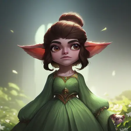 基本的なプロンプト:Yordle, short statue, big pointed ears