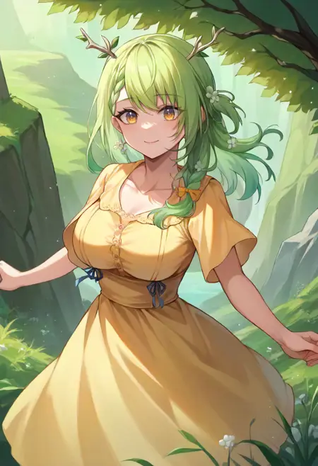 🌿 4가지 옷 스타일 제공: 베이스, 캐주얼, 고스, 신년. 각각을 생성하려면 오른쪽의 태그를 복사하세요. 안경, 카디건, 앞치마 같은 액세서리를 포함하거나 생략할 수 있으며, 헤어스타일을 변경할 수 있고, 때로는 네거티브 태그를 이용해 도움을 받을 수 있습니다. 또한 "fauna, antlers"와 원하는 헤어스타일을 사용하여 다른 옷차림으로 생성할 수 있으며, 이 경우 LoRA의 가중치를 약간 낮추세요(약 0.8). 원한다면 프롬프트에 "milf"나 "큰 가슴" 같은 용어를 추가할 수 있습니다.