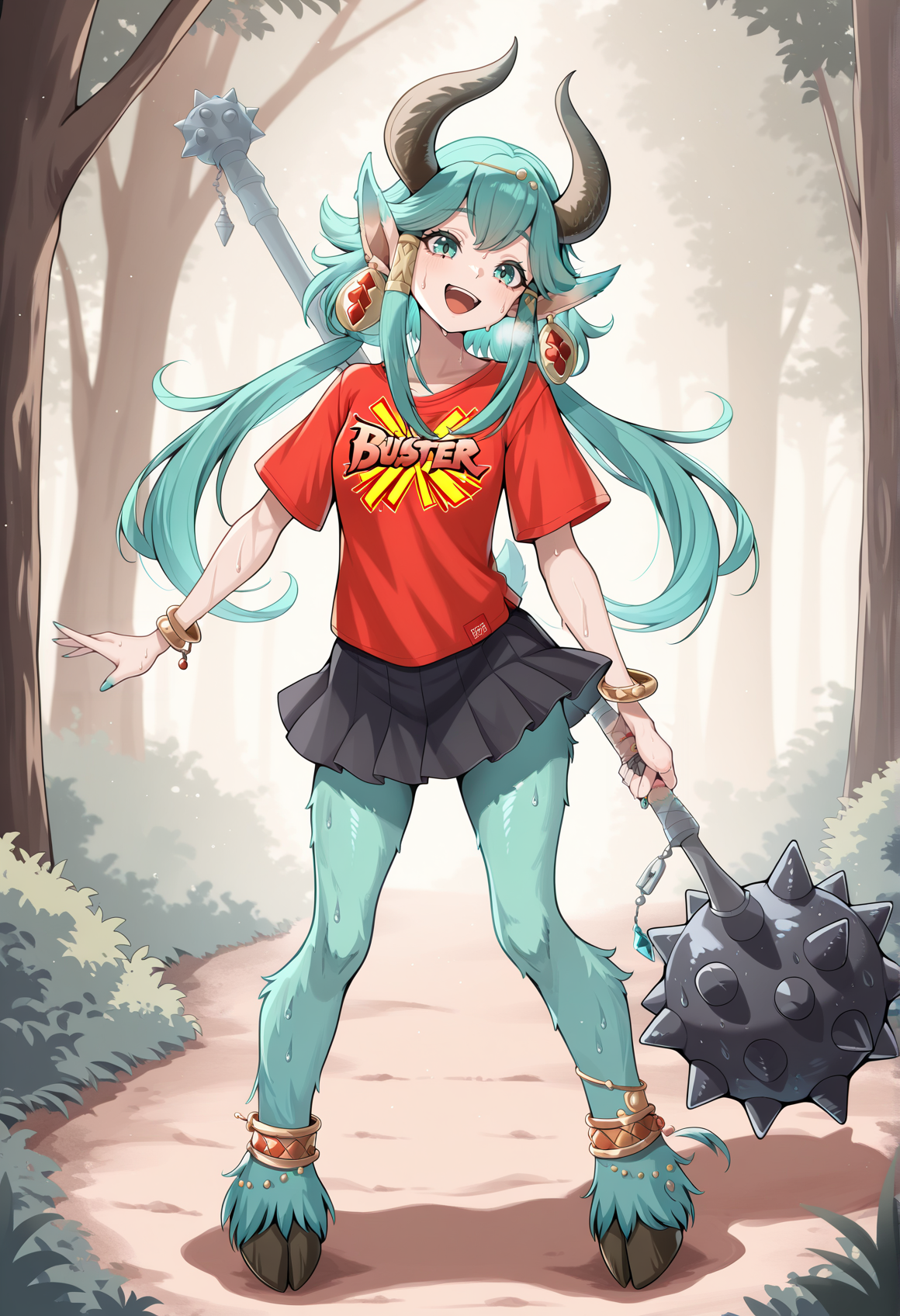 注目タグ:モンスターガール、ファウン、サティロス、角、アクアアイズ、尖った耳、長い髪、アクアヘア、サイドロックス、ロータイントテール、イヤリング、髪飾り、ジュエリー、ポンチョ、チューブトップ、取り外し可能な袖、ブレスレット、透けスカート、アクアファー