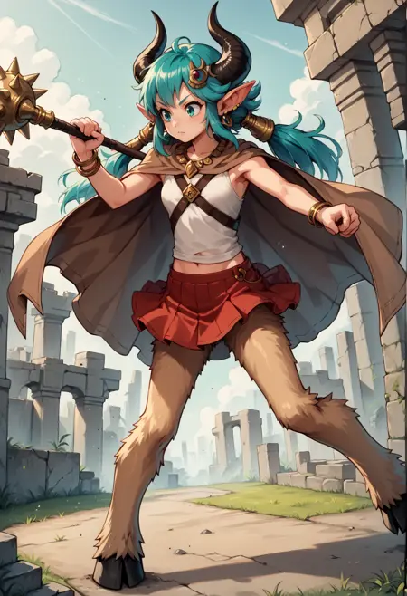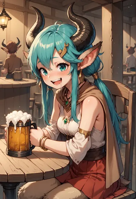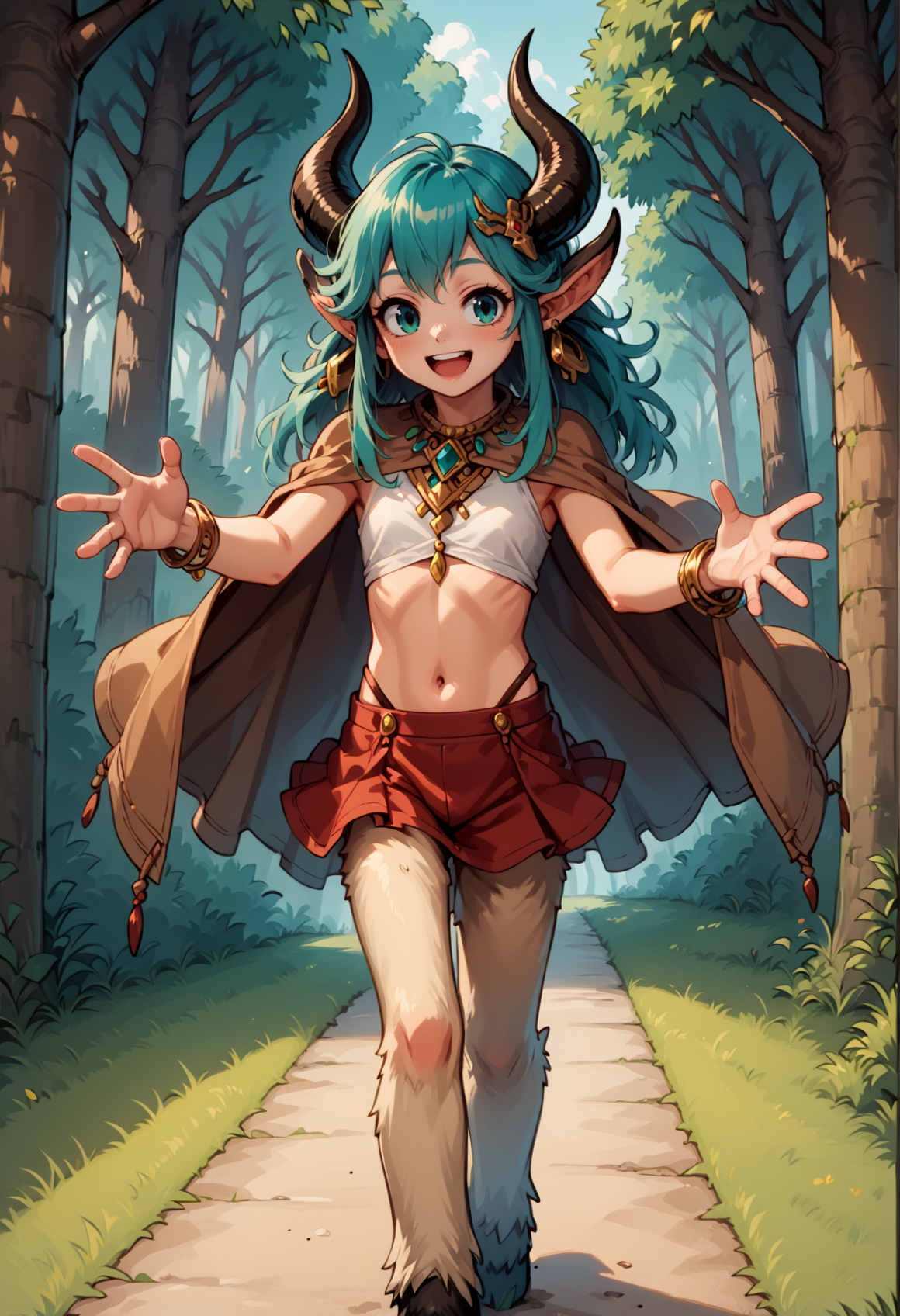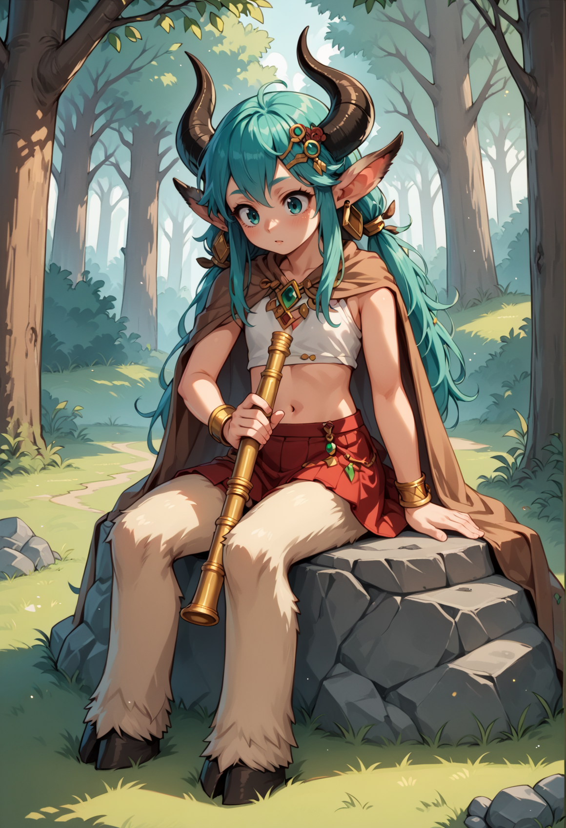 注目タグ:モンスターガール、ファウン、サティロス、角、アクアアイズ、尖った耳、長い髪、アクアヘア、サイドロックス、ロータイントテール、イヤリング、髪飾り、ジュエリー、ポンチョ、チューブトップ、取り外し可能な袖、ブレスレット、透けスカート、アクアファー