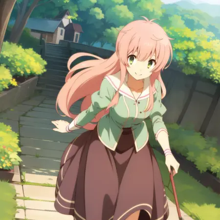 The main character, "watashi", in "Humanity Has Declined". Trigger is "watashi" and weight is around 0.8.
