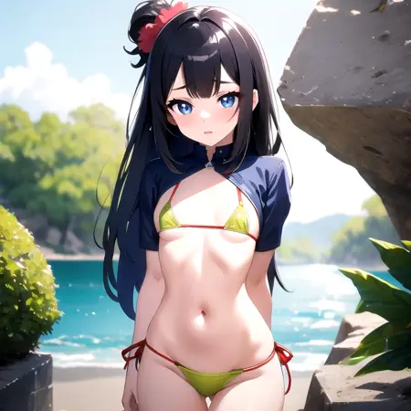 Micro bikinis, bikinis, string bikinis, bikinis with small cloth area, bikinis with overwhelmingly small cloth area, bikinis where nipples are almost visible,