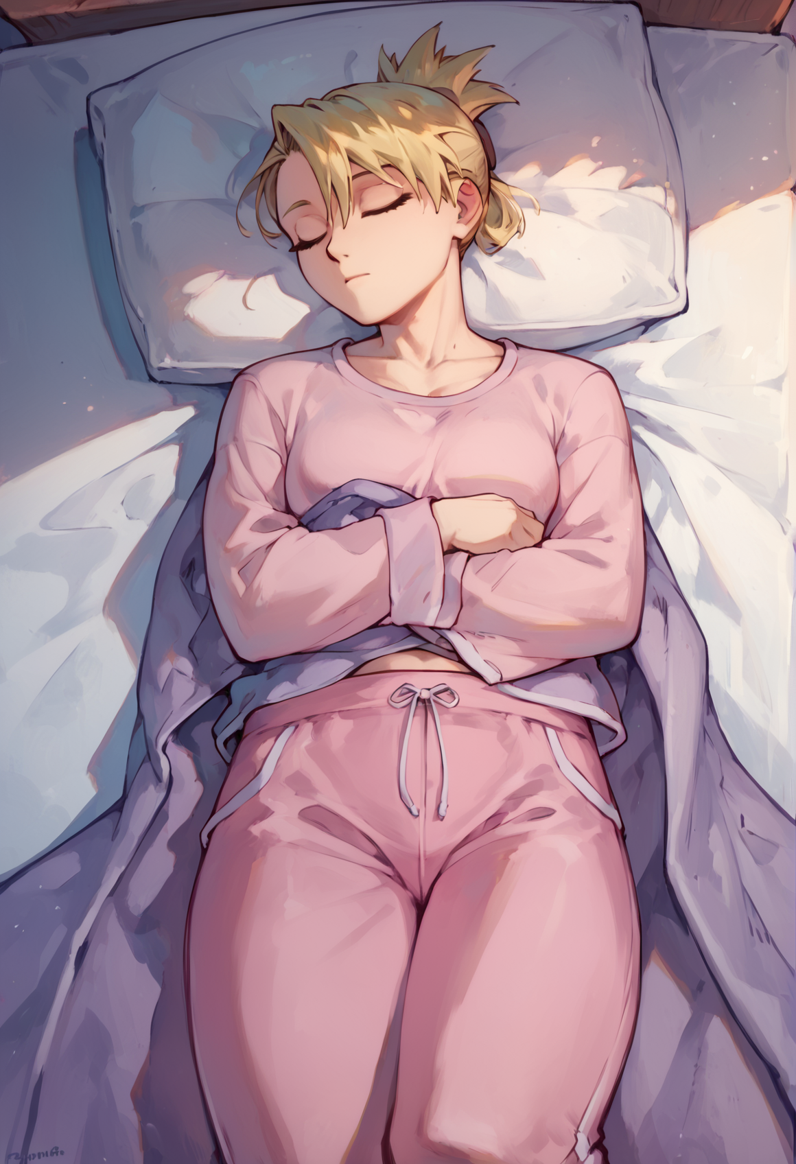 Clothes prompts are : blue uniform, blue pants, amestris military uniform