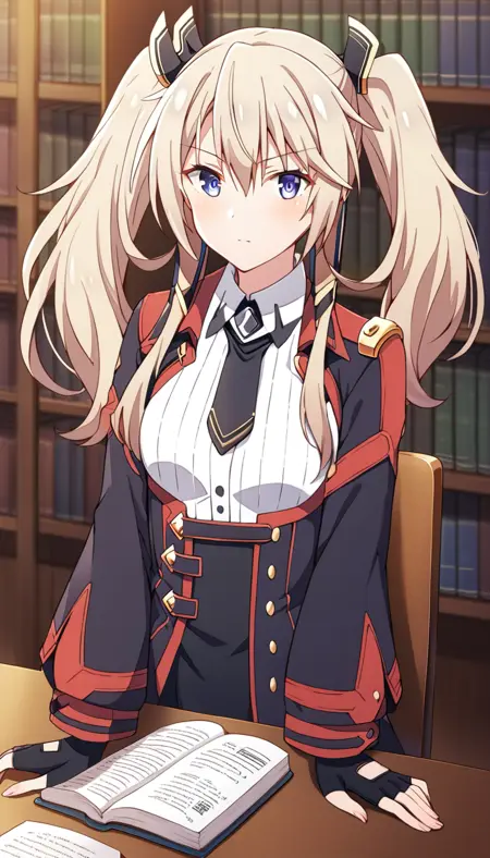 <lora:sasha_necron-maou_gakuin_no_futekigousha_s2-v3-ixl-anime-soralz:1>, 사샤 네크론 (마오 가쿠인 노 퓨테키고우샤), 긴 머리, 금발, 트윈테일, 눈 사이의 머리카락, 사이드락, 머리 리본, 파란 눈