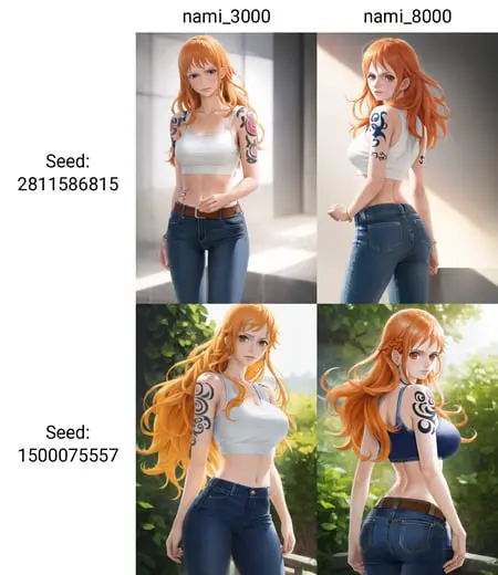 UPDATE: please consider switching to my newest nami LoRA(s): /model/15431/nami-one-piece-pre-and-post-timeskip-lora