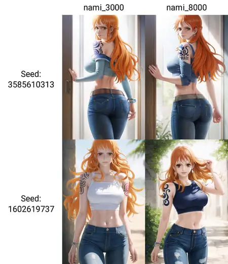 更新:请考虑改用我最新的Nami LoRA模型:/model/15431/nami-one-piece-pre-and-post-timeskip-lora