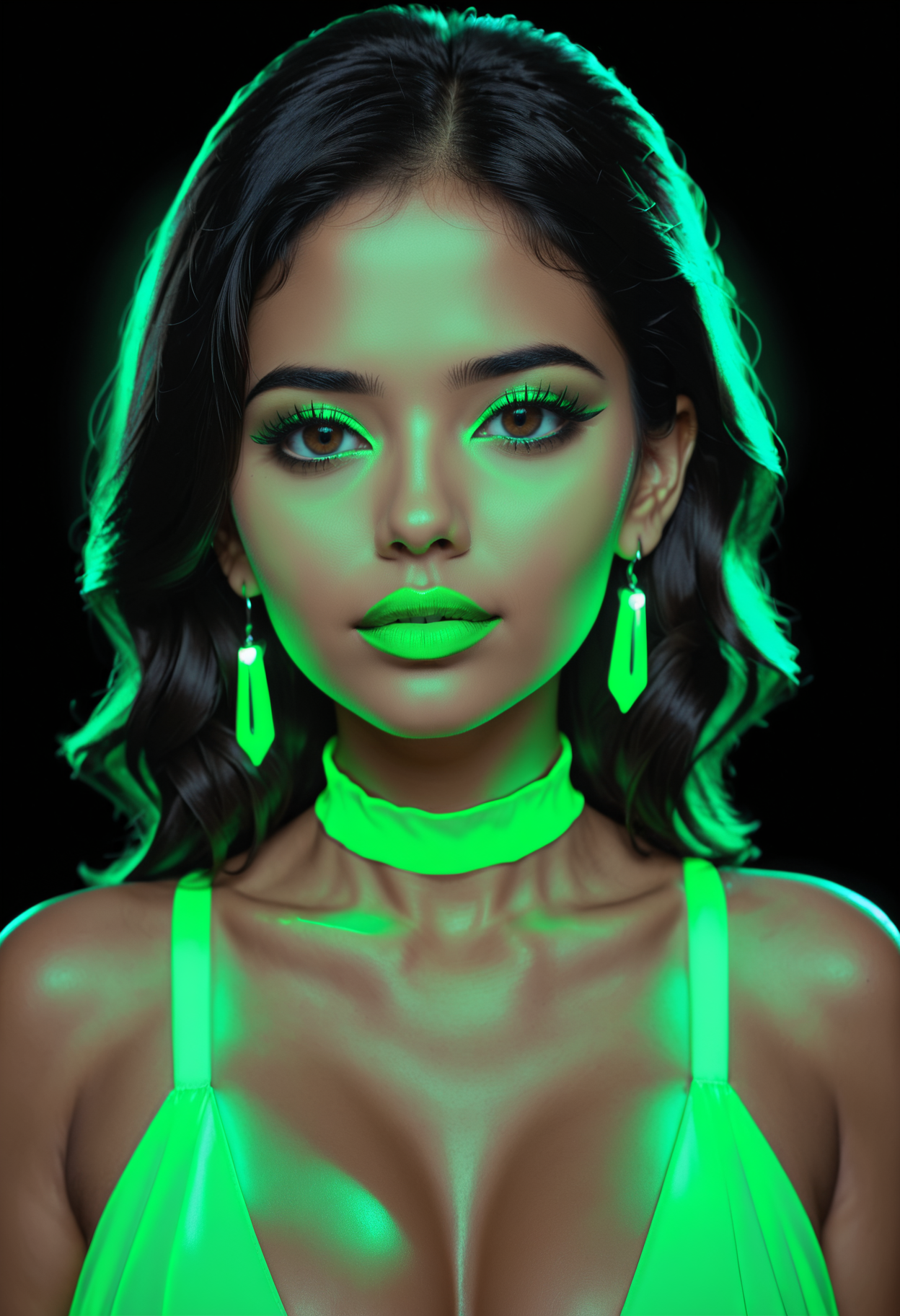 Some colours and clothing types have a weaker glowing effect than others. When this happens, try increasing prompt weight and/or Lora weight. (Or leave as is if you don't care for the glowing effect.)