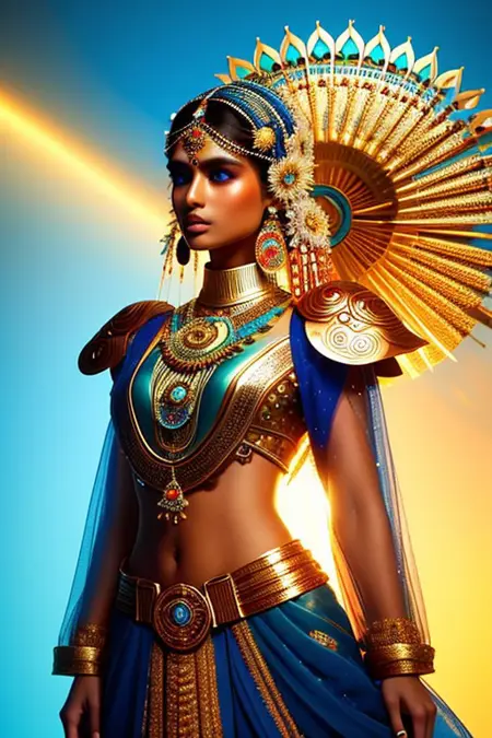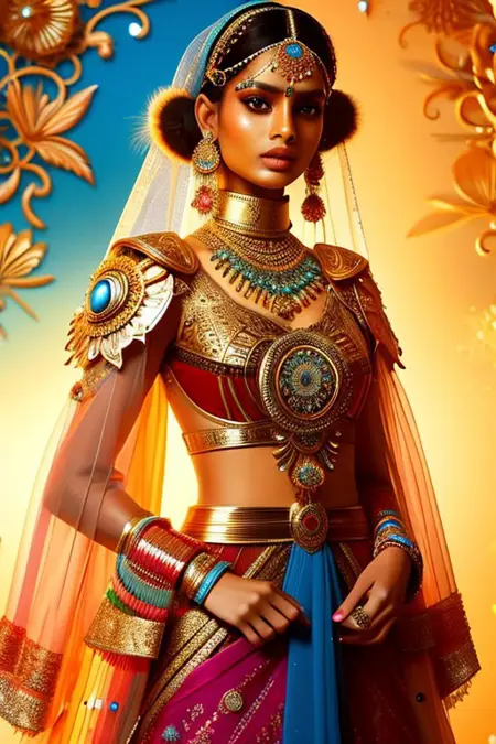 Fantasy clothes with a blend of futuristic, modern, and india culture