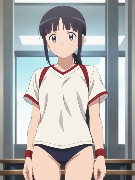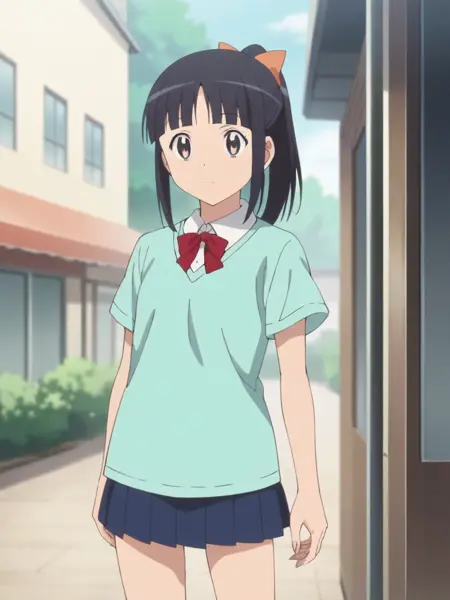 sakura_mutsuko,black hair,ponytail,blunt bangs,