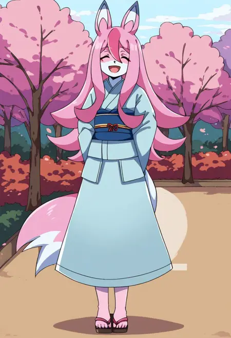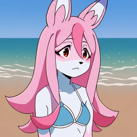 anthro, furry, fox, nazuna, pink and white fur color, two-tone fur,