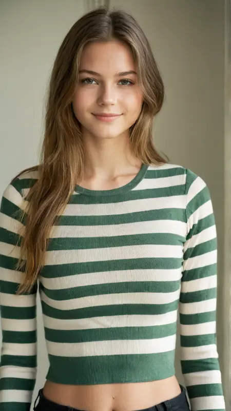 This model was trained for SD 1.5 and SDXL on over 100 images of this green-white stripped long sleeve crop top/shirt found on vinted.