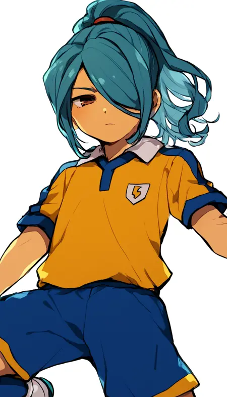 raimon, raimon soccer uniform, sportswear, soccer uniform, yellow shirt, blue shorts,