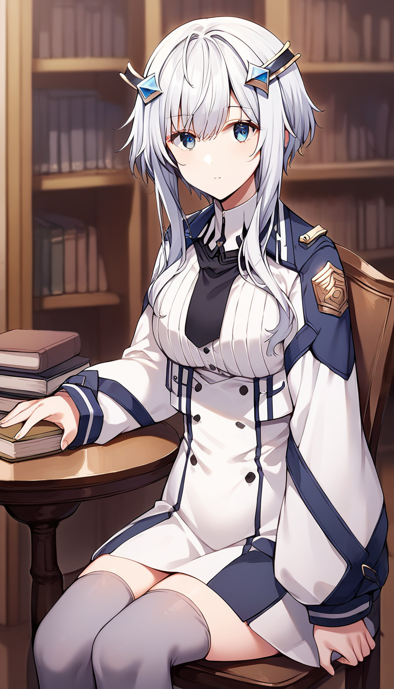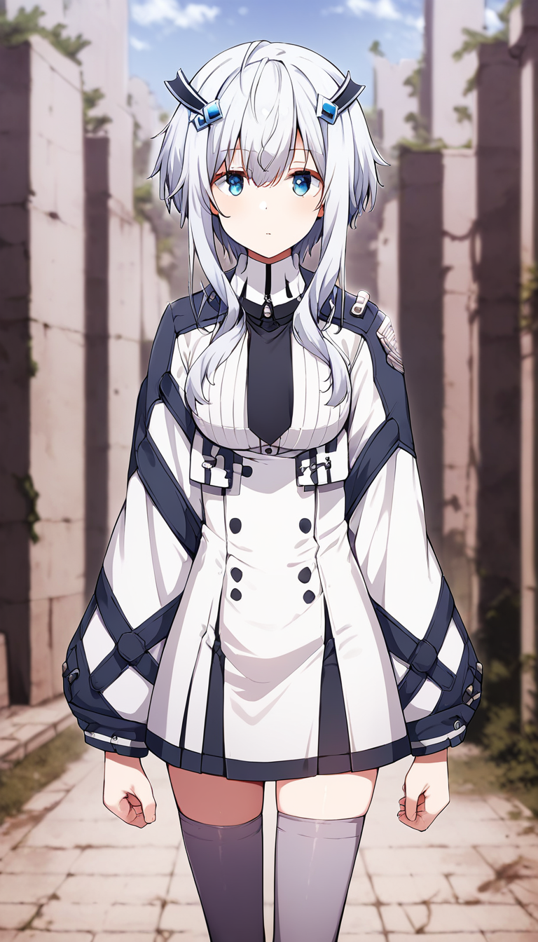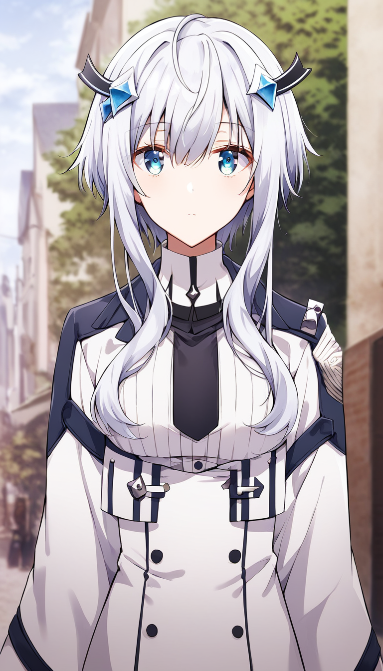 <lora:misha_necron-maou_gakuin_no_futekigousha_s2-ixl-anime-soralz:1>, 米莎·内克隆(魔王学院的不适任者),短发,白发,渐变发色,蓝发,呆毛,发饰,鬓发,发丝遮眼,蓝眼