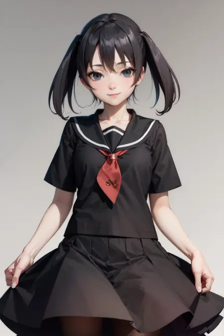 구로메, 학교uniform, 검정 세라포, 검정 스커트, 검정 팬티스타킹아카메의 트리거 + 복장: