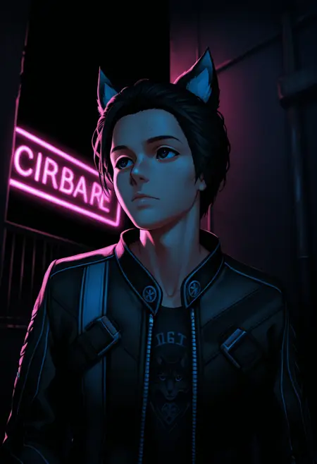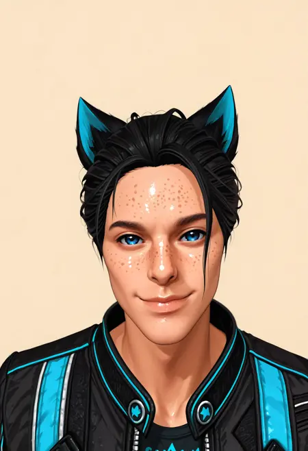 Maverick NORMALLY has black hair, but we've been sometimes toying with giving him dyed bangs since the lighting in the lora sometimes changes his hair color.