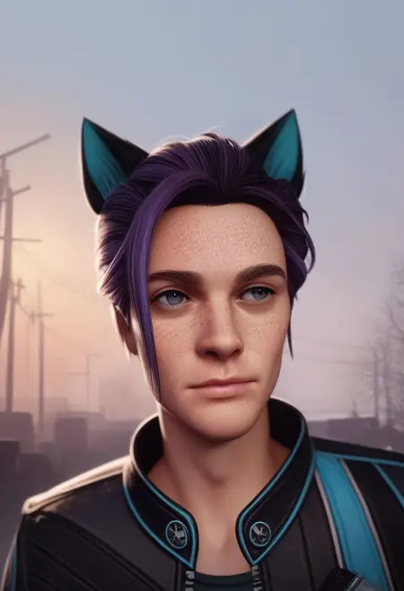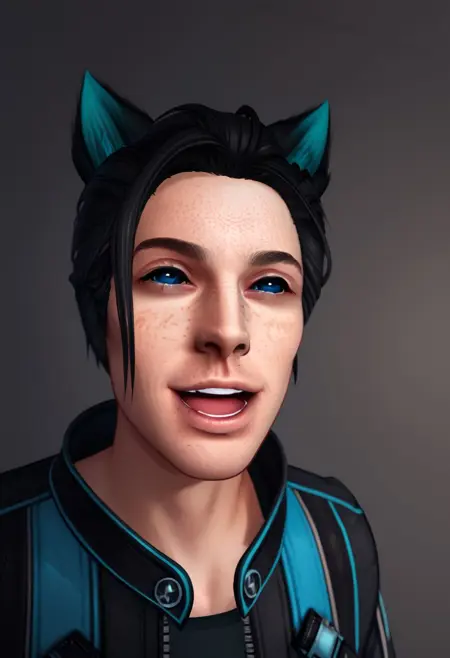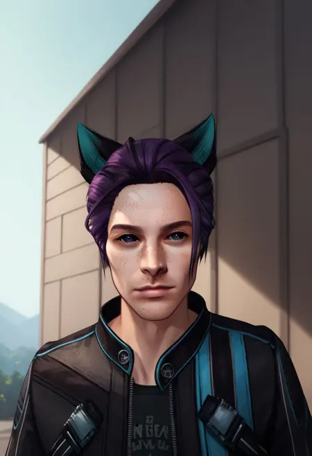 Mason的外观相似,但没有巩膜(如果这个Lora允许的话,因为它100%基于Maverick的数据,Mason只是看起来像Maverick,但基于旧SD 1.5 Lora的衍生形象)——所以没有黑色巩膜,只有白色;他的头发是紫色,不是蓝色或黑色。