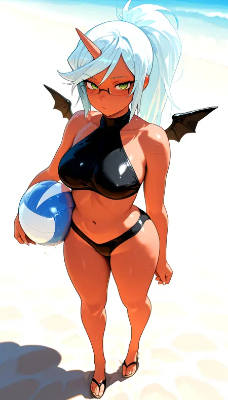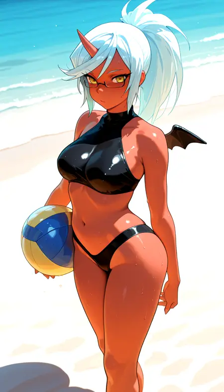 Swimsuit: psgkneesocks, demon_swimsuit