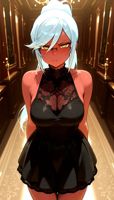 Demon outfit: demon_outfit, bra, glasses, skirt, thighhighs