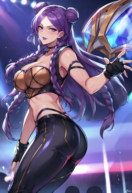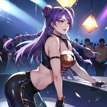 Use "double bun, twin braids, long hair, arm strap" if you are having trouble with gens.