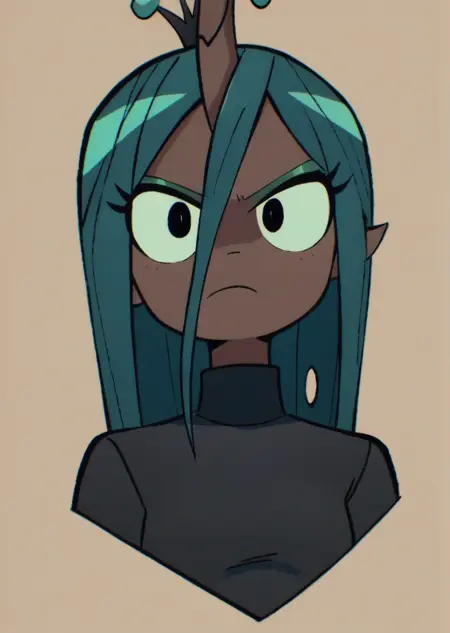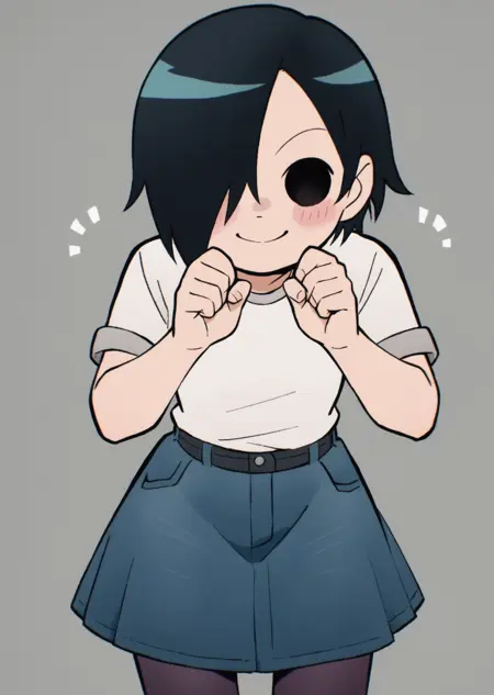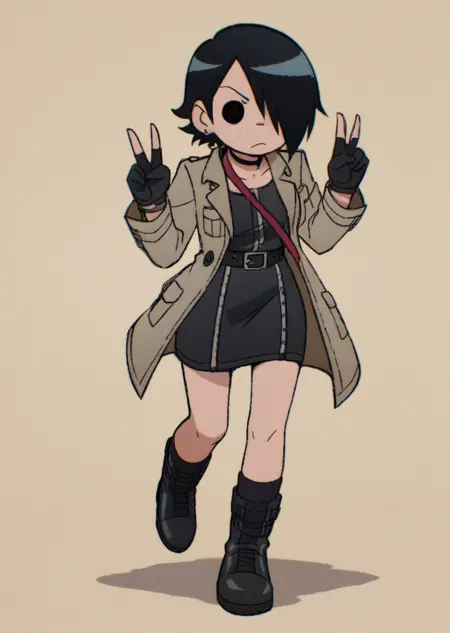 Chau, black hair, side ponytail / hair over one eye, no sclera