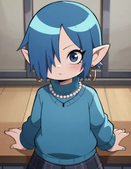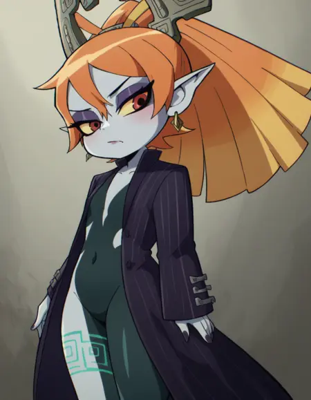 Chau, black hair, side ponytail / hair over one eye, no sclera