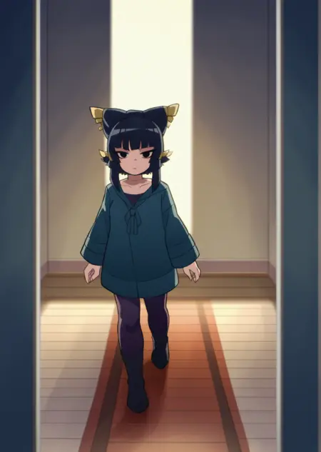 Chau, black hair, side ponytail / hair over one eye, no sclera