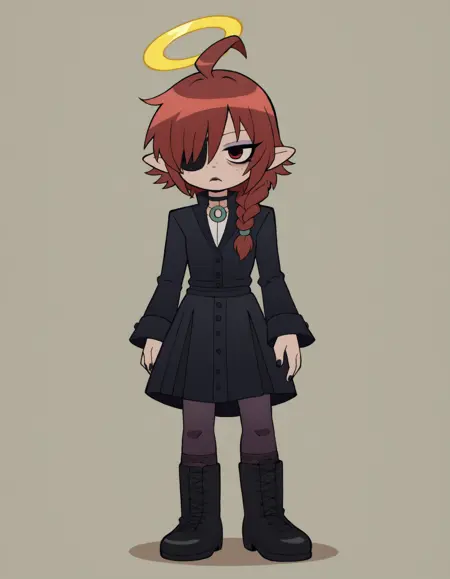 Chau, 검은 머리, 한쪽으로 묶은 머리 / 한쪽 눈 위의 머리, 공막 없음