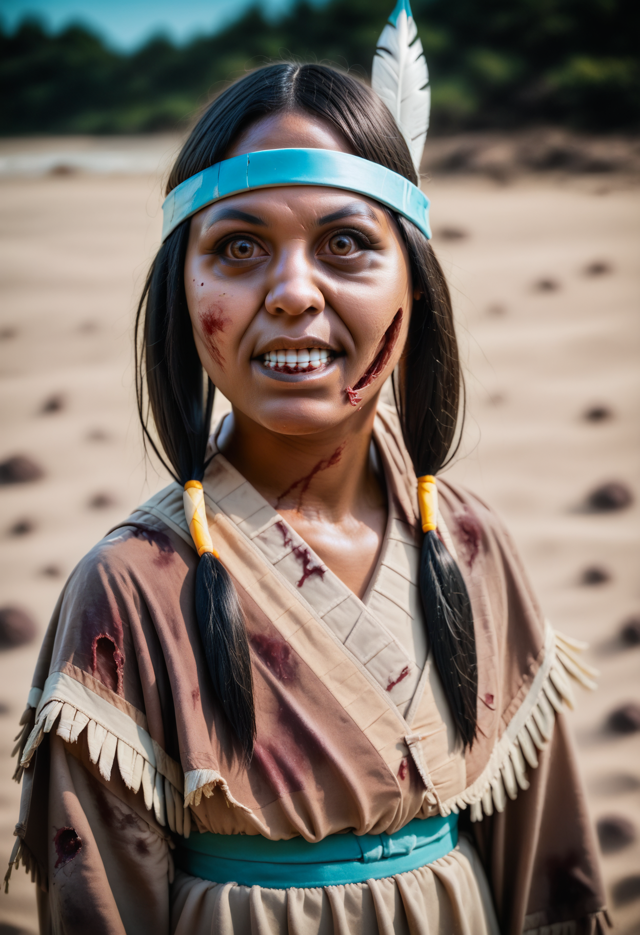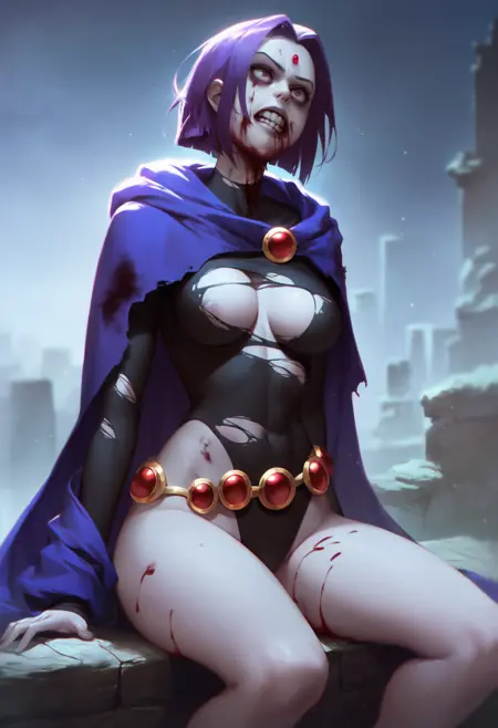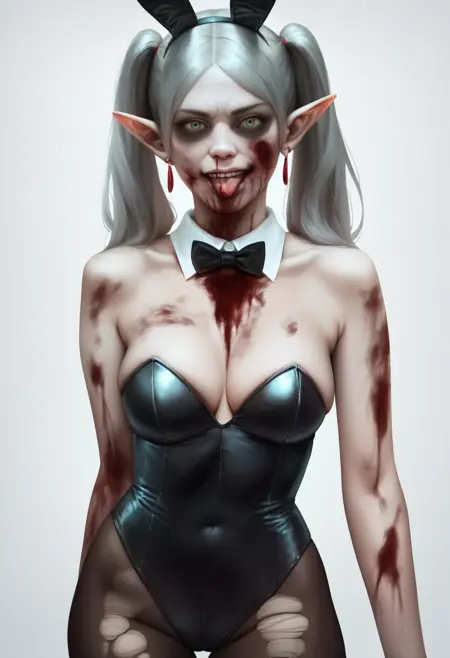 プロンプト: zombie, blood, torn clothes, horror \(theme\), blood on face, blood on clothes