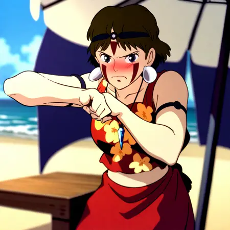 要让她佩戴面具,移除与眼睛、面部彩绘等相关的标签,并尝试在正向提示中加入“mask on face”或“mask”。提示可能有点棘手,因为数据集中仅包含约6张她面部佩戴面具的示例。训练集还额外包含了6张Cosplay面具的照片。