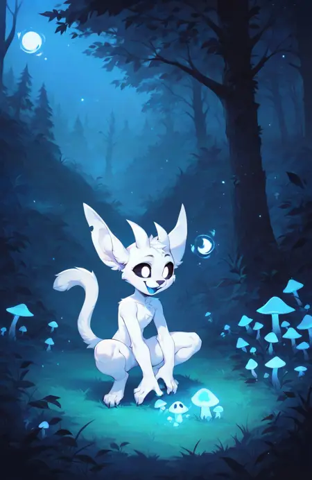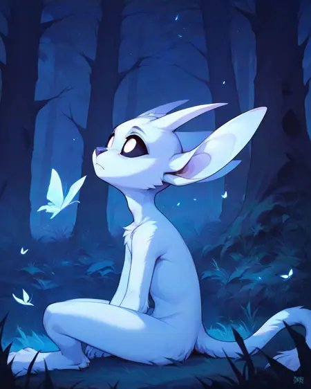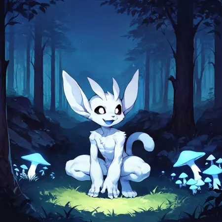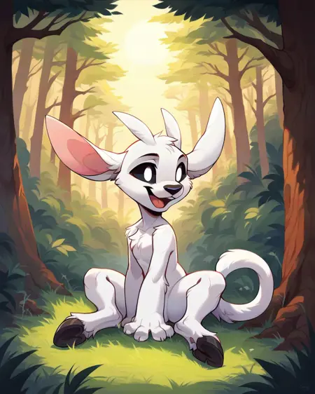 Basic Prompt: ori, paws, tail, black sclera, white eyes, source_furry